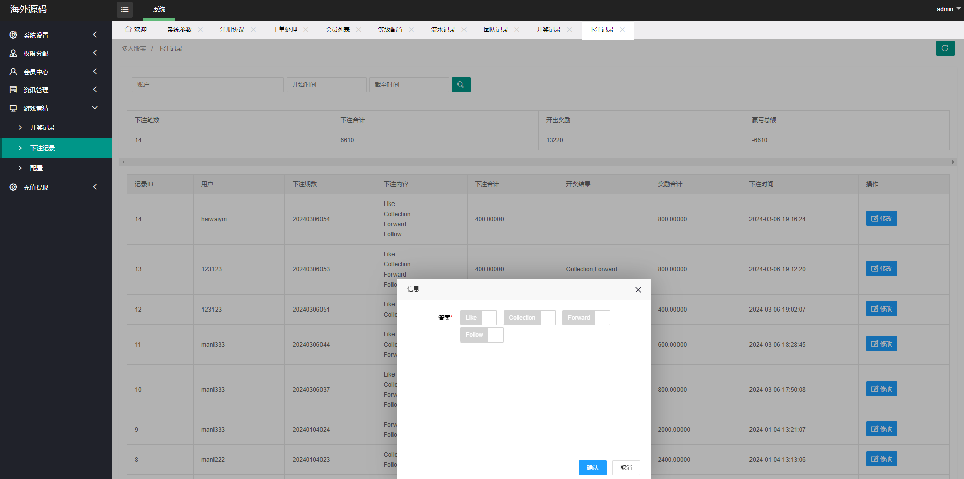 海外源码网 抢单源码 多语言伪商城系统/海外Tiktok点赞下注/竞猜下注/开奖预设 https://moyy.us/29841.html